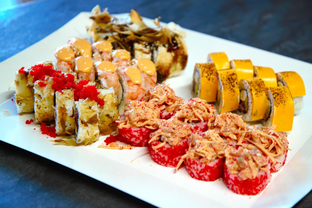 - Каліфорнія спайсі з шапочками сурімі та лососем